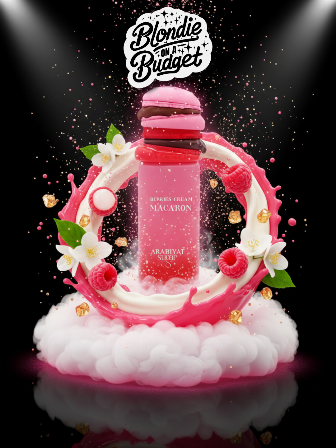 Middle notes are Raspberry, Maltol and Jasmine